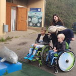 Am Montag den 23.9.2024 habe ich, Zoe, die Klasse 15 auf einen Schulausflug in das Naturerlebniszentrum Maasholm begleitet. Es gab dort verschiedene Räume, in denen wir z. B ein altes Fischerboot und alte Netze gesehen haben, die dort ausgestellt sind. Aber auch Muscheln zum Anfassen, ein Spiel zum Angeln von Fischen und eine Station zum Üben von Seemannsknoten gab es dort. Auf einem Ausstellungstisch konnten wir sehen wie lange verschiedenste Dinge aus Kunststoff brauchen, um sich vollständig im Wasser zu zersetzen. Auf dem Außengelände, das ehemals ein Marinegelände war, stehen noch heute alte Mauern, die nun mit Tierbildern aus vergangenen Zeiten, wie z.B. einem Mammut und einem Säbelzahntiger bemalt sind.